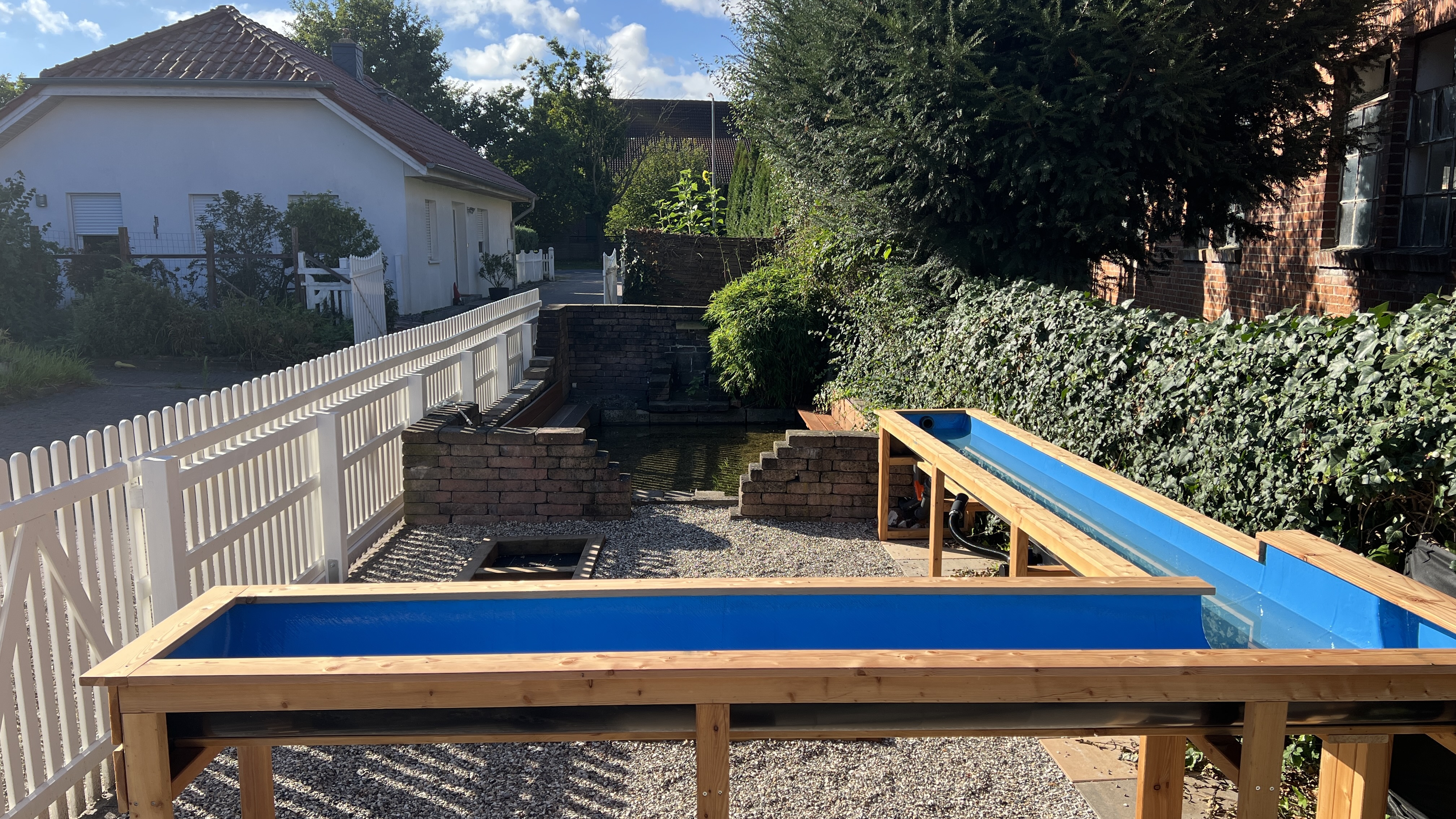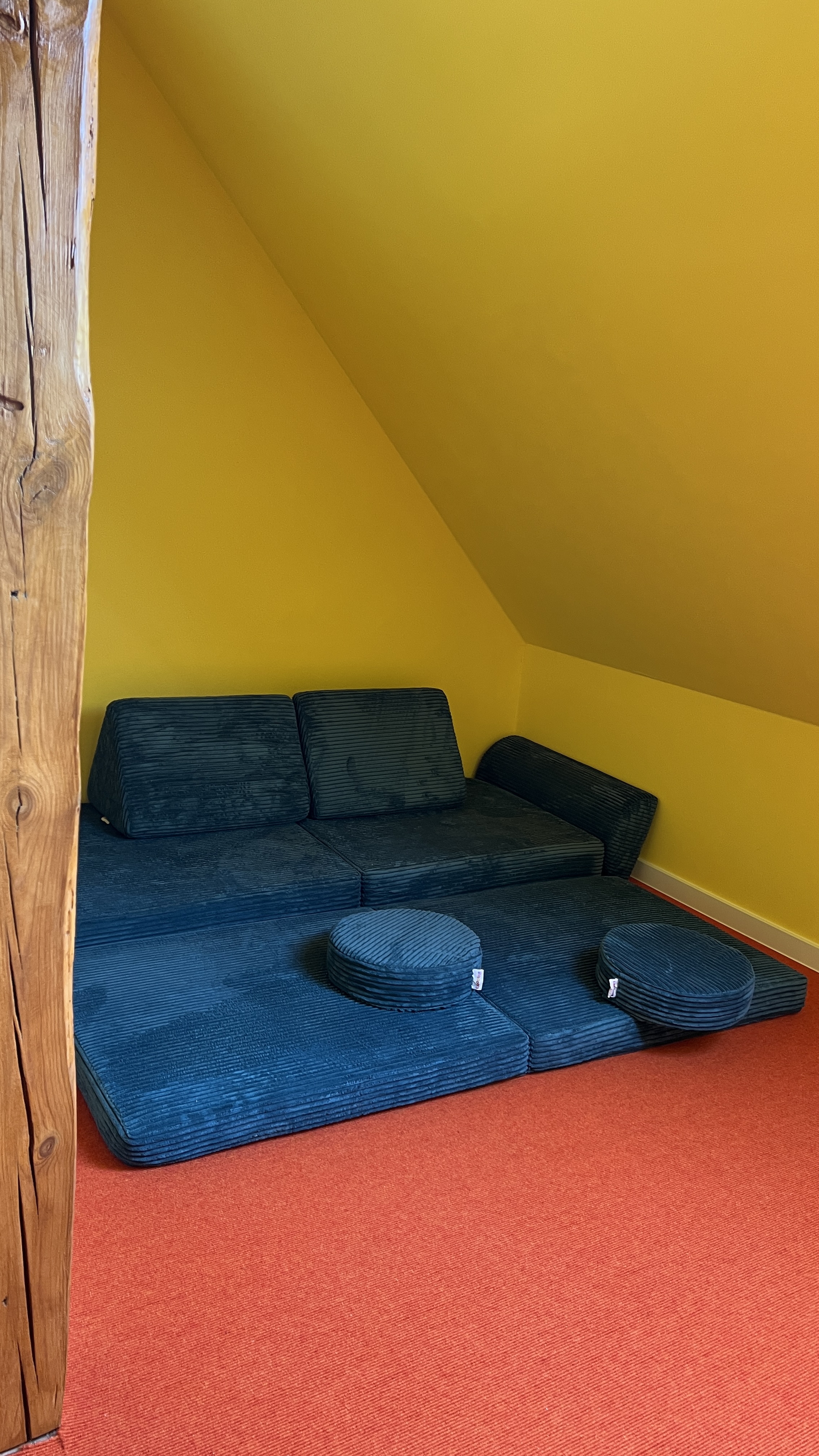 Unser vier Hektar großes Außengelände ist ein echtes Highlight. Eine eigene Werkstatt, eine kleine „Wasser-Welt“ und ein Trampolin schaffen Raum für Bewegung, Forscherdrang und handwerkliche Projekte. Auch tiergestützte Intervention findet hier ihren Platz: Kaninchen, Hühner, Zwergschweine, Ziegen und sogar Molche sind Teil unseres tierischen Teams und fördern auf ganz eigene Weise den Beziehungsaufbau und die soziale Entwicklung.